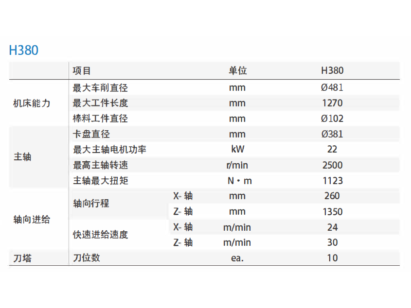 高效型车削中心 H380系列